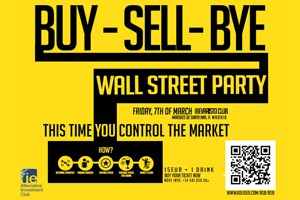 Mar 7, 2014. IE Alternative Investment Club: Have you ever been to a Stock Market Party? Well there's no time like the present! Buy, Sell, Bye... sponsored by the IE Alternative Investment Club @Evaristo Club. Fortunes will rise prices will fall. This time you're in charge of the market. Take a walk down Wall St, test the market and enjoy yourself with the most extravagant and glamorous people in town. Buy your tickets HERE or cafeteria at MM4 & MM31 on Friday Feb 28, Monday Mar 3, & Wednesday Mar 5. |
