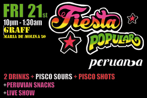 Feb 21, 2014. IE Peru Club Madrid Chapter: IE Peru Club Madrid Chapter invites you to experience some of our traditional dances and to try our traditional food and drinks at Graff (María de Molina 50)! Don’t forget to bring all your friends and come early for some Pisco Sours. You can buy your tickets at the Launchpad (María de Molina 31) or with your Peruvian friends. |
