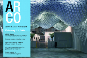 | Feb 22, 2014. IE Arts & Business Club: IE Arts & Business Club is happy to offer you a special discount for one of the most interesting international contemporary art fairs and invite you to a guided tour on Feb 22. During the days 21-23 of the art fair you will be granted with a 50% discount on the entrance fee (20€ instead of 40€). Just show your IE student card at the entrance. Additionally, on Saturday, February 22, we have organized a FREE guided tour, included in the entrance price. The tour is limited in number, so please hurry up to register. |